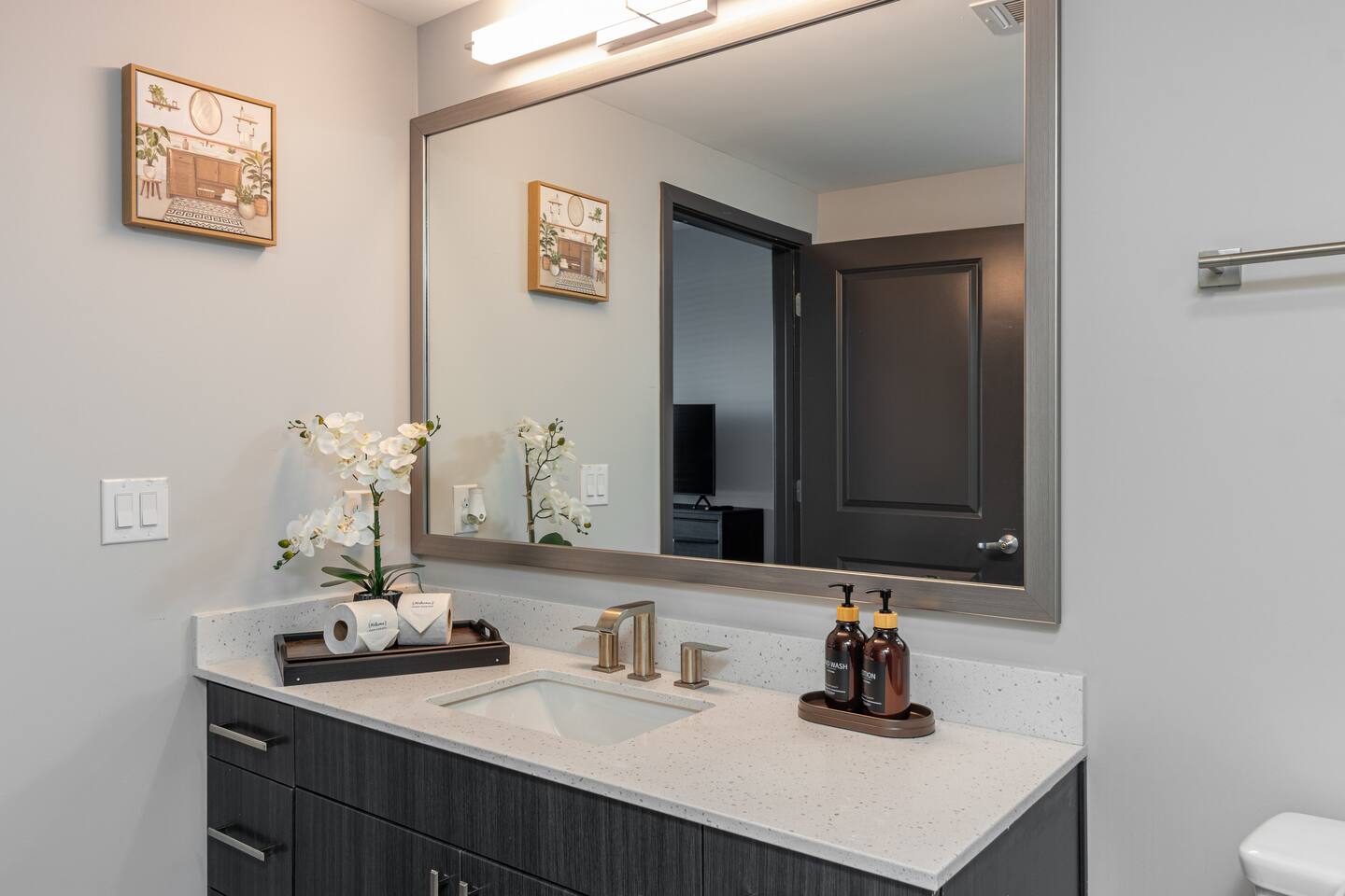 🎸 Stylish & modern 2-bedroom flat minutes from Broadway 🛏️ 2 Queen beds + ensuite bathrooms 🌇 Skyline views of downtown Nashville 🍳 Fully stocked kitchen + coffee bar 📺 Smart TVs + fast WiFi for streaming & remote work 🚗 Free parking + quick Uber access to nightlife & attractions 🧼 In-unit laundry + starter toiletries & cleaning supplies